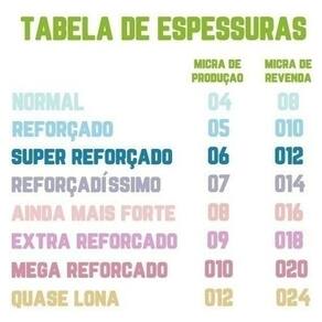 Espessura de fábrica (sacos 60L): 06