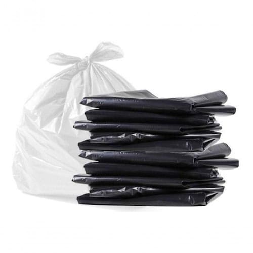 Material em polietileno preto oferece boa resistência e discrição ao lixo.