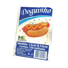 Kit 6 pacotes de sacos plásticos para Hot Dog Doguinho com 100 unidades cada, total 600 unidades.