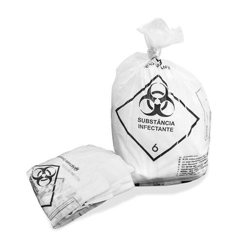 Características: • Ideal para acondicionamento de resíduo infectante não perfurante; • Solda de fundo tipo Estrela, 4x mais resistente; • Material denso, não transparente; • Atende as normas de higiene e seguranta da ANVISA e ABNT; • Possui tag para identificação de local e data do lixo; • Pacote com 100 unidades.