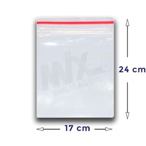 superior do saco permite um fechamento simples e hermético. Os sacos plásticos com fecho zip são indicados para diversos produtos, oferecem durabilidade e resistência ao rasgo e à perfuração.