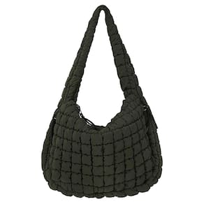 Especificações: Origem: China continental Tamanho: 430,00 x 350,00 x 165,00 mm/16,93 x 13,78 x 6,5 polegadas Material principal: Nylon Material do forro: Poliéster - ??Material de nylon? A bolsa acolchoada é feita de tecido de nylon e acolchoada com algodão, macia e confortável. O forro de poliéster é resistente a rasgos e durável. - ??Estrutura de grande capacidade? Tamanho de cerca de 43 x 35 x 16,5 cm, esta bolsa fofa é espaçosa para caber em seus itens essenciais como iPad, livros, roupas, celular, cosméticos etc. O design com fecho de zíper mantém seus itens essenciais seguros. - ??Bolsa para uso diário? A bolsa acolchoada pode combinar com qualquer roupa. Adequada para uso diário, como compras, encontros, trabalho, viagens, academia e assim por diante. - ??Alça de ombro confortável? A alça de ombro acolchoada alargada reduz a pressão no ombro, macia e confortável. A alça de ombro não é ajustável. - ??Design com vários bolsos?A bolsa puffy é projetada com 2 bolsos laterais com zíper para acesso fácil e rápido a itens como chaves, celular ou cartões.