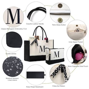 Alça de couro, botão de latão retrô e bolsa interna com zíper: nossa bolsa de lona inicial tem uma alça de couro graciosa e design de botão de latão retrô. Fonte bordada com monograma clássico e presente personalizado: cada sacola personalizada é individual usando um monograma de alta densidade de fio em uma fonte preta clássica, permitindo que você dê um toque pessoal ao seu presente. Presentes de aniversário para mulheres: nossa bolsa de praia é ótima para muitos itens, como laptops, toalhas, lanches, garrafas de água, roupas, arquivos etc. A bolsa de praia personalizada é adequada para muitas ocasiões, como trabalho, fim de semana. Capacidade extra grande e durável: 45 cm de largura + 32 cm de altura + reforço inferior de 19,8 cm com uma alça de lona reforçada de 61 cm. Grande o suficiente para guardar todos os seus acessórios diários, incluindo roupas, documentos, bebidas e lanches. A bolsa grande é feita de lona resistente 100% de 368 g. Os pontos duplos tornam a bolsa preta forte o suficiente para guardar muitos itens sem quebrar. O botão de metal na parte da junta torna as alças longas suficientemente fortes. Alças de ombro longas se ajustam ao conforto do seu ombro. Lavar à mão e reutilizável: nossa bolsa inicial é feita de lona 100% natural de 368,5 g. A lona pesada por fora e por dentro tem um forro que não se molha. A bolsa utilitária é facilmente lavável à mão e de longa duração. (Observação: lavagem à máquina não é recomendada.) Você pode usar esta bolsa de lona reutilizável por um longo tempo e também pode ajudar você a reduzir seu impacto no meio ambiente. - Alça de couro, botão de latão retrô, fita de bolinhas e bolsa interna com zíper: nossa bolsa de lona inicial tem uma alça de couro graciosa e design de botão de latão retrô. A bolsa com zíper facilita o armazenamento de seus pequenos itens importantes, como telefones, chaves e óculos, e fácil acesso. Além disso, tem outros dois bolsos para você organizar seus itens de forma mais organizada e guardar seus pertences de forma mais eficaz. O rodapé faz com que a bolsa mantenha sua forma e fique sobre a mesa - Fonte bordada com monograma clássico e presente personalizado: cada sacola personalizada é individual usando um monograma de alta densidade de fio em uma fonte preta clássica, permitindo que você dê um toque pessoal ao seu presente. Portanto, a sacola de presente pode ser um presente perfeito para mulheres, noivas, senhoras, mães e amigas. Além disso, a bolsa de presente com monograma pode ser uma maneira adorável de agradecer às damas de honra, dama de honra, mãe da noiva/noivo e convidadas, pelo amor e apoio no seu dia especial - Presentes de aniversário para mulheres: nossa bolsa de praia é ótima para muitos itens, como laptops, toalhas, lanches, garrafas de água, roupas, arquivos etc. A bolsa de praia personalizada é adequada para muitas ocasiões, como trabalho, fim de semana, praia, casamento, chá de panela, presente de aniversário, feriado, despedida de solteiro, escritório, ioga, compras de supermercado, presentes de apreciação exclusivos, presentes de aniversário de 30 anos para ela, presentes de noiva, presentes de aniversário para amigas - Capacidade extra grande e durável: 45 cm de largura + 32 cm de altura + reforço inferior de 19,8 cm com uma alça de lona reforçada de 61 cm. Grande o suficiente para guardar todos os seus acessórios diários, incluindo roupas, documentos, bebidas e lanches. A bolsa grande é feita de lona resistente 100% de 368 g. Os pontos duplos tornam a bolsa preta forte o suficiente para guardar muitos itens sem quebrar. O botão de metal na parte da junta torna as alças longas suficientemente fortes. Alças de ombro longas se ajustam ao conforto do seu ombro. - Combinação perfeita de bolsa de maquiagem: esta bolsa feminina também tem uma bolsa cosmética independente. A combinação de bolsas grandes e pequenas pode atender melhor às suas diferentes necessidades. Ambas são feitas de lona 100% natural de 368,5 g. A bolsa utilitária é facilmente lavável à mão e de longa duração. (Observação: lavagem à máquina não é recomendada.) Você pode usar esta bolsa de lona reutilizável e também pode ajudar você a reduzir seu impacto no meio ambiente.