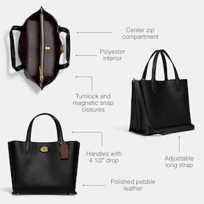 Coach Bolsa feminina de salgueiro de couro polido 24, Preto