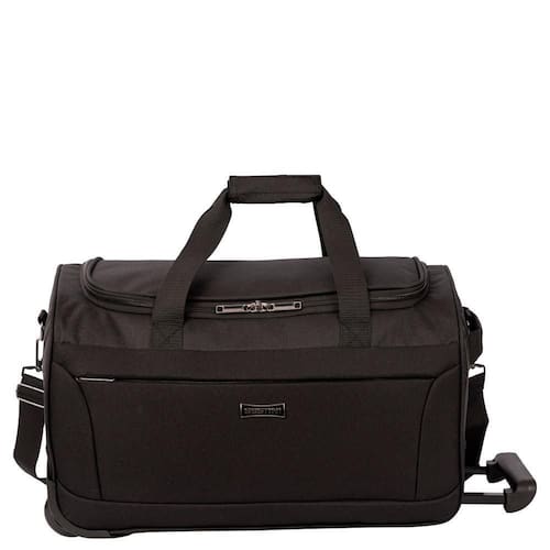 A Sacola com Carrinho Média Ultralight 5t Plus - Preto é uma opção versátil e prática para suas viagens. Com 2 rodas sem sistema de giro 360, proporciona uma movimentação eficiente. A alça transversal regulável oferece ajuste de altura, garantindo conforto no transporte. Possui alças de mão dupla, bolso frontal com zíper, puxadores com trava para cadeado que garantem a segurança de seus itens. Carrinho embutido e o forro personalizado adiciona um toque de estilo ao interior da sacola. A alça de mão lateral e a alça carona oferecem opções adicionais de transporte, adaptando-se às suas necessidades.