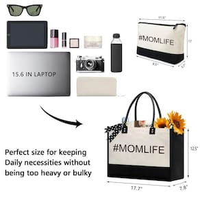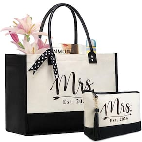 1. Tamanho e material: Material: Feito de material de lona de 368 g, durável e reutilizável. Tamanho da bolsa: 43 cm de comprimento + 34 cm de largura + 17 cm de altura, grande o suficiente para guardar tudo no dia do evento. 2. Bordado exclusivo e requintado e presente personalizado: nossa bolsa de presente personalizada tem letras pretas bordadas na frente, acabamento requintado, agulha e linha densas e boa textura. 3. Bolsa interna com zíper e alça de couro: nossa bolsa de lona tem uma bolsa interna com zíper. A bolsa com zíper facilita o armazenamento de seus pequenos itens 4. É um presente personalizado para o Dia das Mães, aniversário, Natal, ano novo, presente de Ação de Graças. - ?Alça de couro e design de unhas?: nossa bolsa de lona para noiva com alça de couro e fivela magnética. A alça de couro pode relaxar suas mãos e ombros, e não deixará sua mão estampada com marcas vermelhas. A textura da alça de couro é melhor, parece mais sofisticada, e esta bolsa Mother of The Bride está mais alinhada com as características das mulheres. O design da unha e a linha de pressão, o reforço duplo não apenas torna a alça mais forte, mas também uma tolerância mais forte. - ?A combinação de 2 bolsas?: esta bolsa de presente para chá de panela também tem uma bolsa de cosméticos independente. A combinação de bolsas grandes e pequenas pode atender melhor às suas diferentes necessidades. A bolsa grande para noivas pode ser usada para guardar seus suprimentos diários de deslocamento, como guarda-chuvas solares, óculos de sol, copos de água, etc. Tamanho da bolsa de maquiagem: 24 x 19 x 9,4 cm, durável e respirável, espaçosa o suficiente para guardar suas ferramentas de maquiagem. É uma bolsa de viagem de maquiagem funcional, bolsa organizadora de viagem de casamento e até mesmo uma bolsa. - Grande capacidade e durável: 43 cm de comprimento + 34 cm de largura + 17 cm de altura. Esta bolsa de presente de chá de panela é grande o suficiente para guardar todos os seus acessórios diários, incluindo roupas, documentos, lancheiras, bebidas e lanches. e é feita de lona de algodão natural 100% resistente de 283 g com uma alça de couro reforçada. que tem o tamanho certo, a bolsa utilitária é feita com fio denso e acabamento requintado. Todas as costuras são reforçadas e costuradas para garantir sua durabilidade. - ?BORDADO E DICAS DE LAVAGEM PERFEITA?: Nossa bolsa de presente personalizada tem bordado de letras pretas na frente, acabamento requintado, agulha e linha densas e boa textura. A lona pesada por fora e por dentro tem um forro que não se molha. As bolsas femininas de praia são facilmente laváveis à mão e de longa duração. (Observação: lavagem à máquina não é recomendada.) Recomenda-se pendurar para secar. Você pode usar esta bolsa de presente reutilizável para noivas por um longo tempo. - ?Várias ocasiões e como presentes?: esta sacola de lona é uma bolsa feminina ideal para o dia do casamento na praia, festa de casamento, deslocamento, viagens, compras. Adequado para ocasiões importantes e uso diário. Particularmente, é o presente de despedida de solteira perfeito para a noiva, mãe da noiva, dama de honra, festa de chá de panela, lua de néctar das flores e dia de casamento. Além disso, a bolsa de presente com monograma pode ser presente de chá de panela, presentes de Natal, presentes de agradecimento ou presentes de aniversário para amizade feminina.