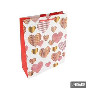 Sacola de Papel 32x26cm Corações Glitter So A Sacola de Papel é uma embalagem encantadora e versátil, perfeita para presentear em ocasiões especiais. Com um design delicado e moderno, esta sacola adiciona um toque de charme e sofisticação aos presentes. Fabricada em papel kraft de alta qualidade, com resistência e durabilidade para suportar o peso dos itens, mantendo a segurança e integridade do conteúdo. Os corações de glitter possuem tons variados, criando um contraste harmonioso sobre a base do papel, que pode variar entre tons neutros ou pastéis, oferecendo um visual encantador e elegante. Possui alças de papel resistente, facilitando o transporte, garantindo firmeza ao carregar os presentes de forma prática e segura.\nDisponível em cores e modelos .\nInformação Adicional Marca : TINGS Tipo de material : Papel Cores ou Estampa : Dimensões do Produto : 32 X 26 X 10 CM Dimensões da Embalagem : 32 X 26 X 10 CM Peso Bruto (Gramas) : 0.007