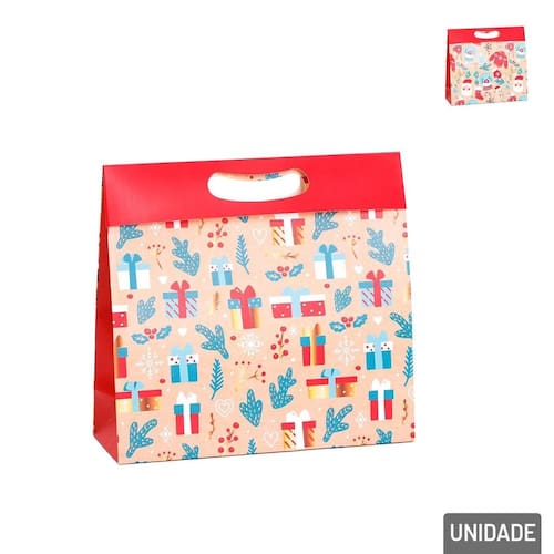 Sacola de Papel 32x30cm Figuras Natalinas Sor Traga toda a magia do Natal para suas celebrações com esta encantadora Sacola de Papel, ideal para presentear com estilo! Com tamanho perfeito para acomodar presentes, doces ou lembrancinhas especiais, ela é adornada com um toque de glitter, que transmite um brilho festivo e encantador, adicionando um toque de sofisticação às suas comemorações. Feita de papel resistente e de alta qualidade, é uma escolha prática e sustentável, perfeita para quem busca alternativas ecológicas. Suas alças reforçadas garantem transporte seguro e confortável, tornando-a a opção ideal para tornar seus presentes ainda mais especiais neste Natal.\nDisponível em cores e modelos . Informação Adicional Marca : RIO MASTER Tipo de material : Papel Cores ou Estampa : Dimensões do Produto : 30 X 32 X 11 CM Dimensões da Embalagem : 30 X 32 X 10 CM Peso Bruto (Gramas) : 0.044 Marca: Não Informado