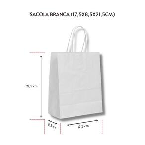 Sacola de Papel Kraft Branca Presente Lembrança Delivery com 100 Unidades