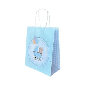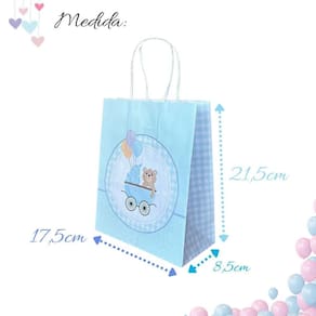Sacola De Papel Kraft Chá De Bebê Menino Com 10 Unidades