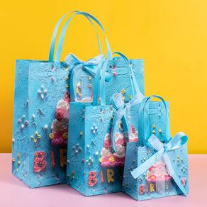 Material: Tamanhos de papelão: pequeno 15* 8* 13 cm, médio 25* 22* 12 cm, grande 35* 15* 32 cm Peso: 400 g/Quantidade do pacote: 3 unidadesPapel cartolina de alta qualidade — Feita de papelão grosso, cada sacola de presente oferece suporte resistente e uma textura refinada, adequada para guardar bolos, sobremesas, acessórios e itens de festa. Design elegante do tema Blue Cake — apresenta uma paleta de cores azul moderna com um visual premium, adicionando um toque elegante e comemorativo a aniversários, festas e ocasiões festivas. Alças de transporte reforçadas com rebite — Equipadas com alças de rebite de metal para maior resistência e durabilidade, garantindo um transporte confortável e um uso confiável sem rasgar. Inclui três tamanhos práticos — vem com sacolas pequenas, médias e grandes para acomodar diferentes necessidades, desde pequenas guloseimas até itens maiores em caixas e produtos assados. Ideal para festas e comemorações — Perfeito para aniversários, reuniões e eventos sazonais, oferecendo uma solução de embalagem atraente e organizada para lembrancinhas e sobremesas.