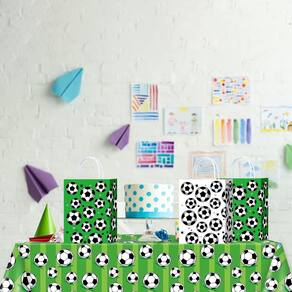 Material: couro bovino branco; tamanho: 22* 16* 8 cm; peso: 18 g; quantidade: 10 peças. Material durável de papel kraft branco — Feitas com papel kraft branco de alta qualidade, essas sacolas oferecem uma estrutura firme com uma superfície lisa, proporcionando resistência confiável e permanecendo leves e fáceis de transportar. Design de desenho animado de futebol atraente — apresenta uma ilustração ousada com tema de futebol que adiciona energia lúdica e charme esportivo, tornando-a uma escolha de destaque para festas infantis e celebrações inspiradas no futebol. Alças reforçadas confortáveis — Projetadas com alças fixadas com segurança que distribuem o peso uniformemente, garantindo uma pegada confortável e evitando a tensão nas mãos durante o transporte. Tamanho médio prático — Medindo 22 × 16 × 8 cm, essas sacolas são ideais para lanches, brinquedos, lembrancinhas e pequenos acessórios, além de serem fáceis de empilhar e guardar. Perfeito para uso em festas e eventos — Adequado para aniversários, atividades escolares, encontros esportivos e celebrações temáticas, combinando visuais divertidos com embalagens funcionais para ocasiões memoráveis.