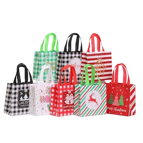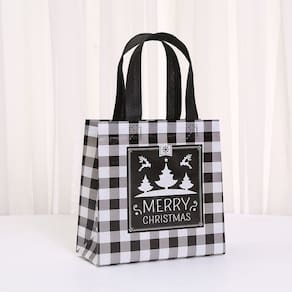 Material: tecido não tecido Tamanho: 20* 20* 9 cm Peso: 500 g/Quantidade do pacote: 10 unidades Cores: mistura aleatória Material não tecido durável com revestimento Feita de tecido não tecido de qualidade com revestimento laminado à prova d'água, esta bolsa de transporte oferece durabilidade e proteção confiáveis para uso diário durante o inverno e as temporadas de férias. O design de atmosfera de Natal de inverno apresenta padrões listrados e xadrez em um estilo simples de inverno, criando uma atmosfera festiva aconchegante adequada para decoração sazonal, eventos e necessidades diárias de armazenamento. Estrutura quadrada compacta