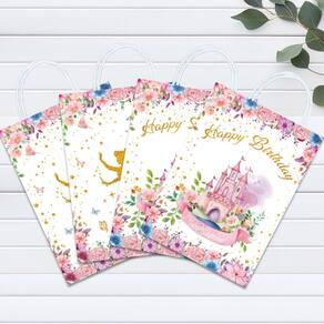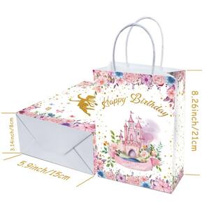 Material: couro bovino branco; tamanho: 15* 8* 21 cm; peso: 20 g; quantidade: 12 peças. Material de papel kraft branco Feita de papel kraft branco de qualidade, esta bolsa de transporte é leve e resistente, oferecendo suporte confiável para lanches, brinquedos, artigos de papelaria ou itens de festa. Fairy Princess Castle Floral Design apresenta um charmoso castelo de desenho animado com flores, criando um estilo de conto de fadas onírico que agrada às crianças e adiciona magia às celebrações temáticas. Construção confortável da alça