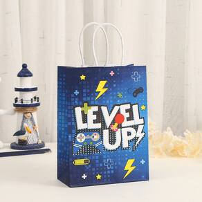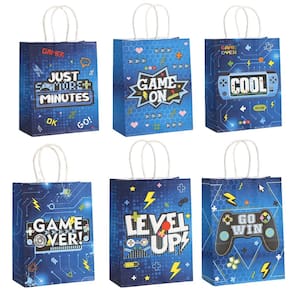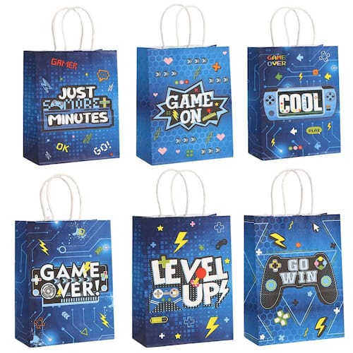 Material: papel kraft; tamanho: 15* 8* 21 cm; peso: 20 g; quantidade: 12 unidades. Material de papel kraft durável — Feita de papel kraft de qualidade, cada sacola de presente oferece uma estrutura forte e leve, adequada para lanches, itens pequenos e embalagens temáticas para festas. Impressão de controlador de jogo azul — apresenta um padrão moderno de controlador de jogo em tons de azul, criando um visual divertido e energético para festas temáticas de jogadores e eventos juvenis. Alças de transporte confortáveis — Projetadas com alças de papel resistentes para facilitar o transporte, tornando essas sacolas práticas para festas, compras e distribuição de comida para viagem. Tamanho compacto e funcional — Medindo 15 x 8 x 21 cm, a bolsa oferece amplo espaço e é fácil de segurar, ideal para lembrancinhas e conteúdos leves. Pacote Value Multi Design — Inclui 12 sacolas de papel impressas em estilos mistos, perfeitas para eventos de jogos, celebrações e eventos coordenados de festas.