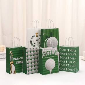 Material: papel kraft; tamanho: 15* 8* 21 cm; peso: 40 g; quantidade: 12 unidades. Construção robusta em papel kraft — Feita de papel kraft durável, cada sacola de presente oferece resistência e estrutura confiáveis, adequadas para lanches, acessórios e conteúdos leves de compras. Estampa clássica com tema de golfe — apresenta um padrão limpo de bola de golfe e taco que oferece uma aparência esportiva e refinada, ideal para eventos de golfe, reuniões em clubes e celebrações temáticas. Alças de transporte confortáveis — As alças de papel integradas oferecem uma pegada segura e confortável, tornando essas sacolas práticas para distribuição de festas, uso no varejo e serviço de entrega. Tamanho compacto e espaçoso — Medindo 15 x 8 x 21 cm, a bolsa equilibra portabilidade e capacidade, cabendo perfeitamente em caixas pequenas, lembrancinhas ou materiais para eventos. Pacote Value Multi-Design — Inclui 12 sacolas de papel impressas em estilos variados, perfeitas para coordenar eventos, festas e necessidades de embalagem sem designs repetitivos.