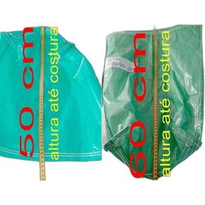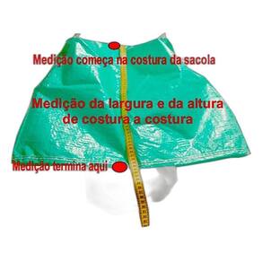Produzido em ráfia, laminada, na cor verde, nas medidas de 50 cm de altura x 50 cm de largura, acondicionada em pacotes com 50 unidades. OBSERVAÇÕES: a altura da sacola de ráfia não é medida como a sacola de papel e sim conforme a foto em anexo que informa como a sua altura deve ser medida. Antes de comprar, solicito que o comprador atente para o detalhe numa das fotos explicativa junto às outras fotos do produto. Marca: Não Informado