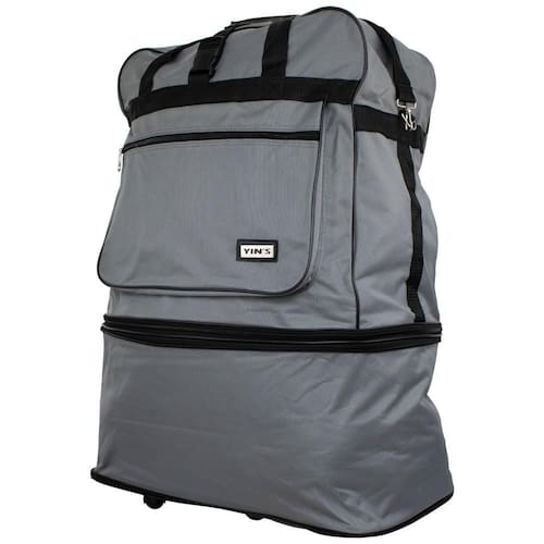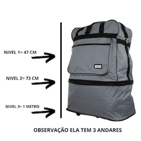 Sacola de viagem Expansível 3 Níveis Mala De Com 6 Rodinhas Grande Cor: Cinza Tamanho: Único Genero: Unissex Sacola Viagem Dobrável com Rodas -YS23009 Bolsa Sacola Mala Viagem com 6 Rodas com giro 360 que facilita o transporte, Expansiva 3x1 tem amplo espaço interno quando expandida, sendo ideal para o transporte e armazenagem de grande quantidade de objetos. Produzida em Poliéster, a sacola de viagem possui alça de mão em toda a sua extensão, além de possuir alça de ombro removível e com regulagem, o que facilita o seu transporte e equilíbrio do peso, possui também 1 bolso externo fechamento em zíper. Mala reforçada com acabamento excelente, materiais de ótima qualidade, base com rodinhas para facilitar o transporte e manuseio Características: -tamanho: Grande G - Material: Poliéster - Rodinhas inclusas: sim; Dimensões Aproximadas: Altura: Nível 1 - 47 cm fechada Nível 2 - 73 cm Nível 3 - 1 metro