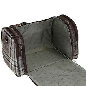 O padrão quadriculado de estampas da Linha Tartan foi inspirado nos trajes típicos dos clãs escoceses. Uma mala resistente, uma sacola versátil e uma frasqueira super prática fazem parte desse conjunto clássico e que farão com que sua viagem seja cheia de estilo. Ela tem capacidade de até 25 kg, segunda opção de alça tiracolo removível, com regulagem de altura e proteção de ombro e zíper da sacola com puxadores personalizados e possibilidade de usar cadeados (Não incluso).