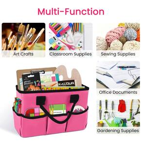 b>A sacola Godery é boa para levar em viagens A sacola que começou tudo. É a loja e sacola de luxo favoritas do professor. Grande espaço tem todas as necessidades de aula, como ler livros, desenho, caneta, tesoura, borracha, regras, papel, todas as folhas de trabalho, trabalhos em casa de estudantes, folhas de teste, etc. Mas também bom para suprimentos de maquiagem para mulheres, porta-berçário, arquivamento doméstico, artesanato de mães, chaves, bonecas infantis, etc. Há uma razão para isso - a bolsa é ideal para transportar praticamente tudo. Dobra plana para facilitar o armazenamento. Especificações: Material: poliéster 600D Duas cores: rosa com alças pretas Azul com alças vermelhas Medidas: 34,5 x 14,5 x 22,1 cm Alça dupla superior 13,5 cm A Sobre os bolsos 1 compartimento central para organizar materiais de artesanato, ferramenta de aprendizagem, documentos de escritório, etc. 5 bolsos externos para marcadores, canetas, lápis de cor e muito mais. 2 alças de transporte são boas para viagens! Ótimo para carregar todos os tipos de produtos que você quiser. Um painel removível de suporte inferior para você escolher como usar. Pode ser utilizado como sacola de compras, bolsa de viagem, bolsa de ferramentas de jardim ou bolsa de artesanato. Tenha em atenção Materiais de arte e outros acessórios não incluídos. Observe que todos os tamanhos são medidos manualmente. A margem de erro é de 1 a 3 cm. Um leve odor é normal. Ele desaparecerá imediatamente quando colocado em um espaço ventilado por alguns dias. Devido à câmera, luz e monitor, a cor física pode variar. - Melhor solução de organização: tem grande espaço de armazenamento para artigos de papelaria de professores, livros, canetas de papel, artesanato, artes, maquiagem, materiais de escritório, cozinha doméstica, etc. - Muito armazenamento pequeno: exceto o armazenamento grande, há 5 pequenos bolsos externos, utilizados para organizar pequenas ferramentas, para que você possa acessá-las em um curto espaço de tempo. Fácil de tocar - Bem feita: a sacola artística é feita de poliéster durável 600D, 2 alças de transporte são boas para viagens! Bom design - Medidas: Tamanho total 34,5 x 14,5 x 22 cm, um papel duro na parte inferior para guardar todas as suas coisas, você não vai se preocupar com eles caindo