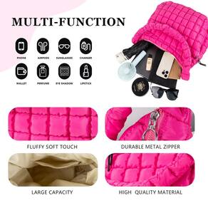 -?Alça superior durável?A bolsa tiracolo de nylon apresenta uma clássica parte superior acolchoada portátil. Feito de material de nylon de alta qualidade, que é macio, leve, durável e confortável ao toque. Também resistente ao desgaste, versátil e elegante.