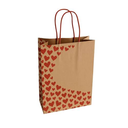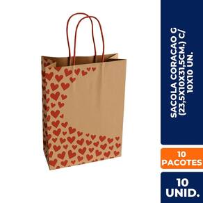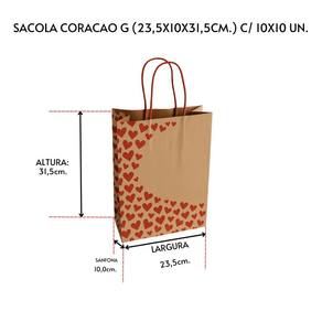 ESPECIFICAÇÕES: Modelo: Sacola Kraft com Estampa de Coração Tamanho: G (23,5 x 10 x 31,5 cm) Quantidade: 100 unidades (10 pacotes com 10 un. cada) Cor/Estampa: Kraft com estampa de corações (tema LOVE / Eu Te Amo) Ocasiões: Dia dos Namorados, Casamentos, Aniversários, Presentes Afetivos Material: Papel kraft ecológico e resistente Destaque: Presenteie com charme, afeto e uma apresentação inesquecível