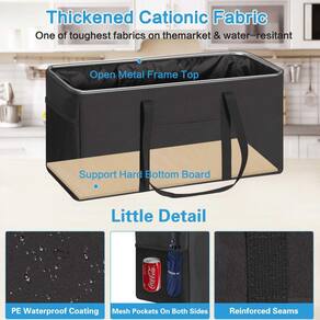 - ?Design reforçado?Bolsa de mercearia com moldura de arame de metal na parte superior aberta para que ela permaneça aberta e as laterais sejam rígidas, leve de carregar e de longa duração. As sacolas de compras reutilizáveis para facilitar o carregamento e descarregamento. As bolsas são feitas de poliéster grosso, o interior possui revestimento à prova d'água que oferece um excelente desempenho à prova d'água para manter os itens armazenados secos, é leve e duradouro para compras, bagagem, piqueniques e armazenamento