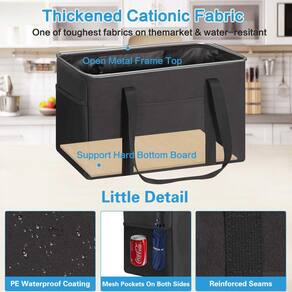 - ?Reinforced Design?Grocery tote bag metal wire frame on the open top so it stays open and the sides are rigid it is light to carry and very long-lasting. The reusable grocery bags up for easy loading and unloading. the totes are made from thick polyester, the interior features pe waterproof coating provides an excellent waterproof performance to keep stored items dry, it is lightweight yet long-lasting for grocery , shopping, luggage, picnics, and storage