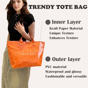 Sacola de PVC, sacola de papel Kraft moderna, sacola feminina grande de papel Kraft com superfície de PVC Especificações: Tamanho: 45 x 29 x 13 cm/17,72 x 11,42 x 5,12 pol. Materiais principais: PVC, papel kraft Método de fechamento: fecho de fecho aderente Forma: bolsa, sacola Assuntos que precisam de atenção Devido à influência do monitor e da iluminação, a cor real do produto pode ser ligeiramente diferente da cor mostrada na imagem. Obrigado! Devido à medição manual, permita um desvio de medida de 1 a 2 centímetros. - ?Bolsa moderna ?: esta sacola popular e ardente tem camadas duplas de tecido, a camada interna é feita de papel kraft, textura única para melhorar a textura, a camada externa tem tecido de PVC, impermeável e brilhante, artesanato requintado, moderno e versátil. - ?Bolsa grande ?: Tamanho: 34 x 29 x 13 cm. Esta sacola com monograma é espaçosa o suficiente para guardar celulares, iPads, canecas, livros, cosméticos e muito mais! - ?Design exclusivo?: Esta bolsa de papel kraft é projetada com 1 compartimento principal, 1 bolso interno com zíper e 1 bolso de inserção para separar seus itens pequenos. Fecho de fecho aderente para acesso rápido, a superfície de PVC é fácil de limpar, basta limpá-la. - ?Ocasiões?: Esta bolsa de plástico tem um design simples, perfeita para uso diário. Seja um fim de semana, compras, viagens ou faculdade, esta bolsa pode facilmente atender às suas necessidades! - ?Ótimo presente?: Esta linda bolsa é muito exclusiva, é um presente ideal para o Dia das Bruxas, Natal ou outros festivais, e também é um acessório de moda diário perfeito