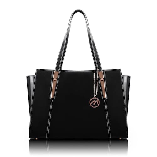 McKLEIN Bolsa feminina de couro com bolso para tablet - ALICIA - preta