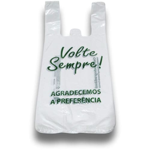 Sacola Impressa do tipo padrão, com os dizeres "Volte Sempre".