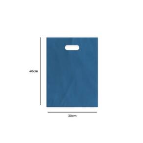 Sacola Plástica Boca de Palhaço Reta Azul 30x40 500un. Sacola Plástica Alça Vazada Azul Reta 30x40 Altura - 30 cm Largura - 40 cm
