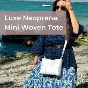 Uma mini sacola de neoprene entrelaçada que parece sofisticada e é tão fácil quanto todas as nossas outras bolsas. Vem com uma alça transversal opcional, conveniente bolso interno com zíper e fecho magnético para facilitar o acesso a todas as suas coisas. Quer você a carregue no ombro, com a mão, pelo corpo ou amarrada na bagagem de mão, essa bolsa sempre parece perfeita. Não se preocupe, ele serve para todos os seus itens essenciais: iPhone, óculos, carteira, maquiagem, máscara facial, desinfetante e chaves.