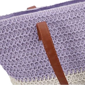 Bolsa de Praia Feminina Listada com Estilo de Crochê e Alças para Ombros