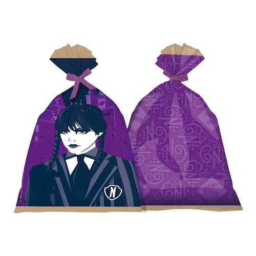 Conteúdo: 8 Sacolas de Plástico Surpresa para Lembrancinhas da Wandinha