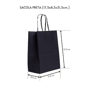 Com dimensões de largura 17,5cm x comprimento 8,5cm x altura 21,5cm, essas sacolas são ideais para diversos tipos de produtos. O kit contém 10 unidades, garantindo que você tenha sacolas suficientes para suas necessidades.