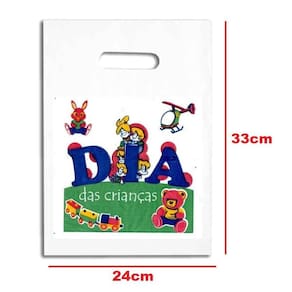 As sacolas plásticas possuem um tamanho aproximado de 33cm x 24cm, proporcionando espaço suficiente para acomodar diversos tipos de presentes. Feitas em plástico resistente, elas garantem durabilidade e segurança na hora de transportar os presentes.