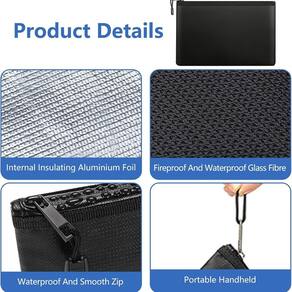 Material: tecido de silicone de fibra de vidro Cor: preto Tamanho do pacote: Aprox. 30 × 40 × 2 cm Peso do pacote: 0,35 kg Lista de embalagem: 2 × sacos à prova de fogo Feitos com tecido premium revestido de silicone de fibra de vidro, esses sacos de documentos oferecem uma poderosa resistência ao fogo, protegendo itens valiosos como dinheiro, identidades, certificados e pequenos eletrônicos durante emergências inesperadas. A camada externa à prova d'água evita que umidade, respingos e chuva leve danifiquem os itens armazenados, garantindo proteção confiável, seja usada em casa, no escritório ou ao viajar com pertences importantes. Com fechos de zíper lisos e bordas reforçadas, as bolsas mantêm um desempenho de vedação seguro, mantendo os documentos fechados com segurança e reduzindo o risco de intrusão de fogo ou água em situações críticas. O conjunto inclui dois tamanhos para acomodar várias necessidades de armazenamento, permitindo que os usuários organizem objetos de valor com eficiência, com a bolsa menor ideal para passaportes e dinheiro, e a bolsa maior adequada para arquivos e certificados. Leves e portáteis, as bolsas podem ser colocadas dentro de cofres, mochilas ou gavetas, oferecendo proteção diária versátil e segurança adicional para documentos pessoais, tornando-as uma solução prática de segurança doméstica.