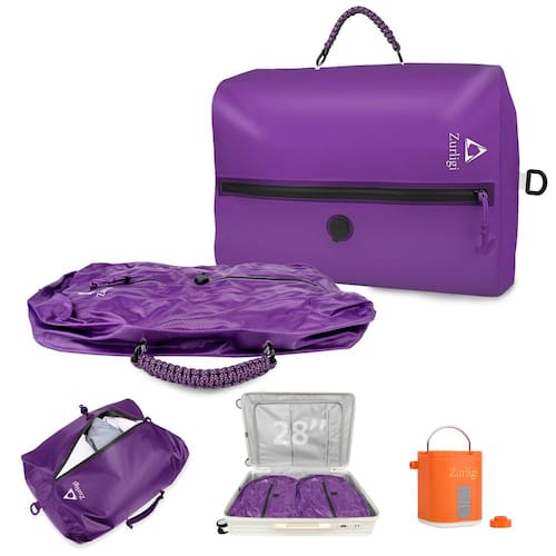 - Sacos de embalagem a vácuo para viagem: Estes cubos de compressão a vácuo de viagem podem comprimir suas roupas e liberar espaço em até 56%. Cada kit de vácuo vem com uma bomba elétrica que remove rapidamente o ar das bolsas, comprimindo suas roupas e reduzindo significativamente o volume. Ótimo para reduzir o volume para maximizar o espaço em malas e mochilas. Ideal para viagens longas ou férias em família