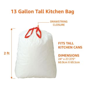Amazon Basics - Sacos de lixo de cozinha altos, 13 galões, 10% de conteúdo reciclado pós-consumo, aroma fresco limpo, 200 unidades, pacote com 1