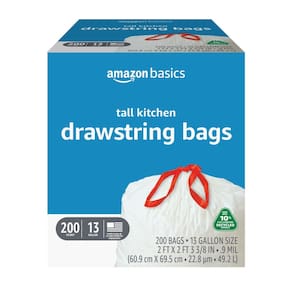 Amazon Basics - Sacos de lixo de cozinha altos, 13 galões, 10% de conteúdo reciclado pós-consumo, sem cheiro, 200 unidades, pacote com 1