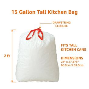 Amazon Basics - Sacos de lixo de cozinha altos, 13 galões, 10% de conteúdo reciclado pós-consumo, sem cheiro, 45 unidades, pacote com 1