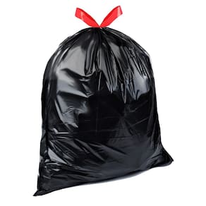 - Saco de lixo preto com fecho de cordão vermelho para fácil amarração e transporte