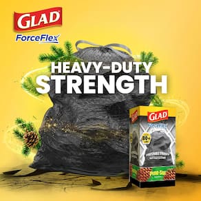 Glad Sacos de lixo, sacos de lixo grandes com cordão ForceFlex, 30 galões, perfume autêntico Pine-Sol, 25 Ct, pacote pode variar