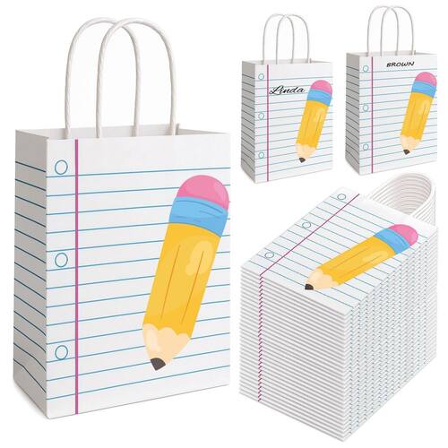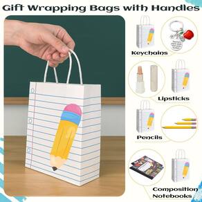 Sacos de papel para presente de agradecimento de professores com alças, linha de caderno, de volta às aulas, presentes para professores, presentes de final de ano, para formatura, aposentadoria, primeiro dia de escola, presentes de festa, sacos de embrulho