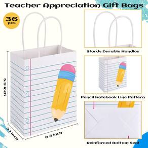 - Sacos de presente perfeitos para agradecimento ao professor: Estes sacos de papel podem ser presentes de final de ano para professores de formatura ou aposentadoria, presentes de volta às aulas, presentes de semana de agradecimento ao professor ou presentes de festa no primeiro dia de aula. Embalagem atraente e conveniente apresenta seus presentes de maneira limpa e profissional e expressa gratidão pelo professor