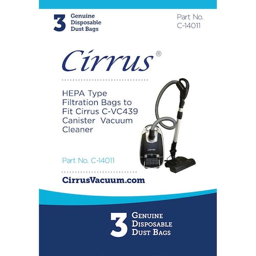 - TODOS OS MODELOS COMPATÍVEIS: Os sacos de vácuo Hepa descartáveis genuínos da Cirrus se encaixam no aspirador Cirrus VC439 Power Head Canister. Número de peça do fabricante: 61D03VC439 14011