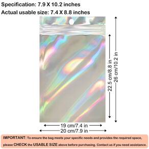 - Sacos holográficos premium – Nossos sacos ziplock de plástico holográficos são feitos de materiais CPP e PET seguros, inodoros, grossos e reutilizáveis, e também podem manter os itens limpos e seguros.