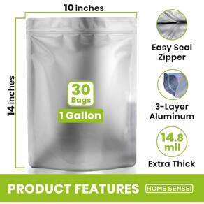 - [Longo prazo e duráveis] Nossas bolsas com zíper Mylar são extremamente duráveis para armazenamento de alimentos a longo prazo. A vedação térmica preserva os sacos de vedação a vácuo mylar por mais tempo. sacos mylar para armazenamento de alimentos 1 galão, sacos mylar 7 mil de cada lado