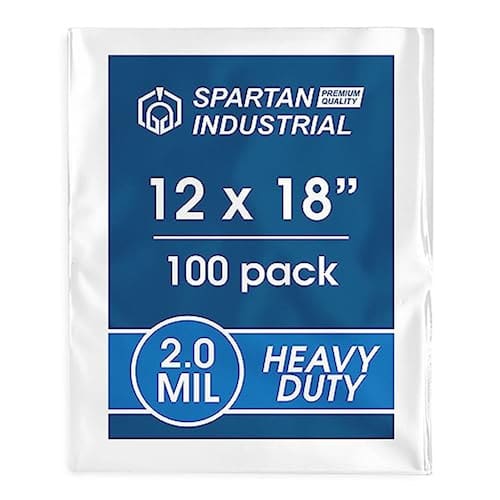Spartan Industrial — Sacolas plásticas transparentes pesadas de 12” x 18” (100 unidades) de 2 mil — para embalar brinquedos, arte e material escolar (as sacolas não têm lacre e não têm estampas)